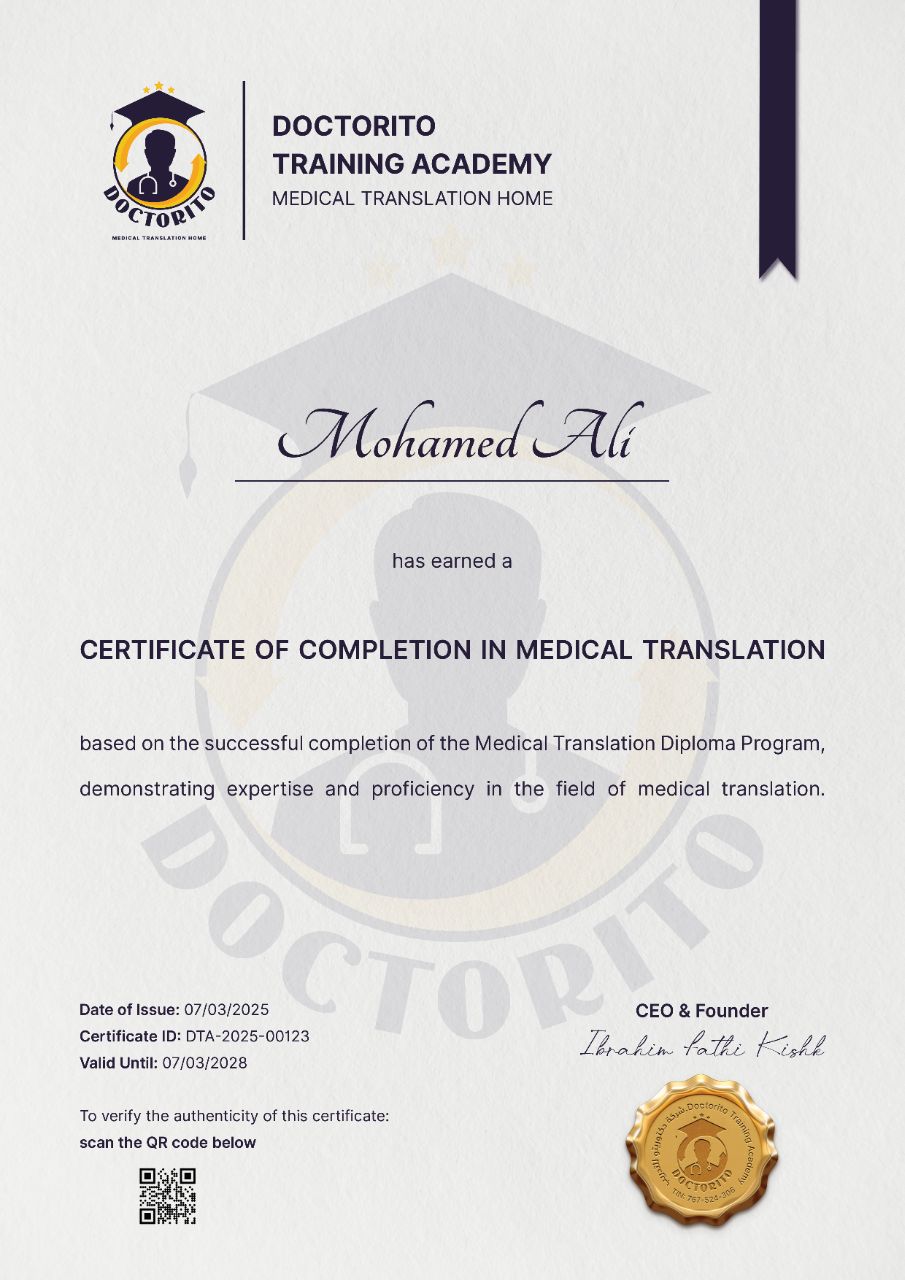 . فن تحليل الوثيقة السريرية: تعلم كيفية تجاوز الكلمات لـتحليل السياق السريري الكامل للتقرير (Full Clinical Context Analysis). هذا يضمن أن تكون ترجمتك دقيقة ومفهومة بالكامل ليس فقط للمترجمين، بل للمختصين والأطباء في الدول المستهدفة.